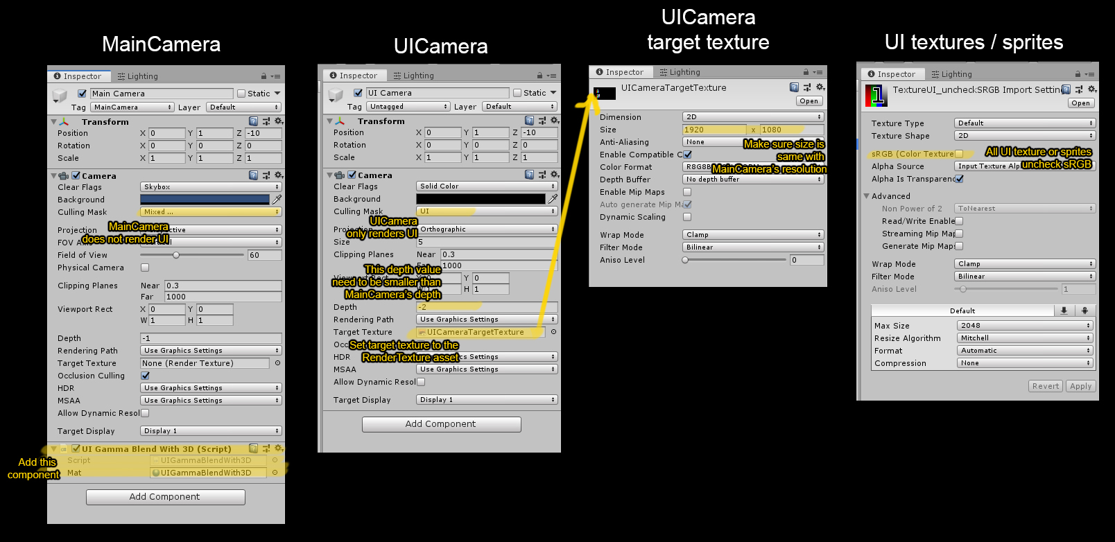 The project contain GammaUIFix assets. These are what you need to include into your own project. And then apply following settings in your own project:
